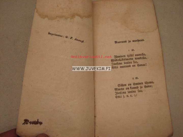 10 x 20 cm pienpainate. Kirjoittaja mahdollisesti Juho Ranginen?.