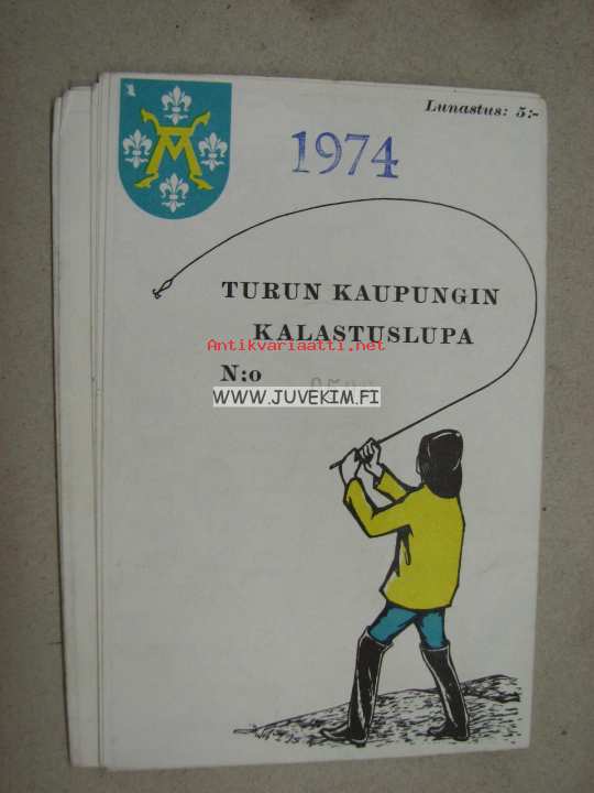 Turun Kaupungin kalastuslupa 1974 Aarne Holm