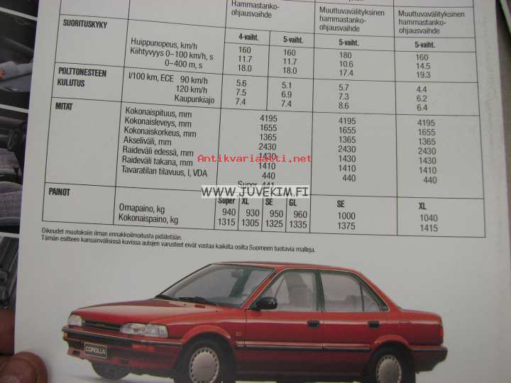 Toyota Corolla Sedan 1988 -myyntiesite