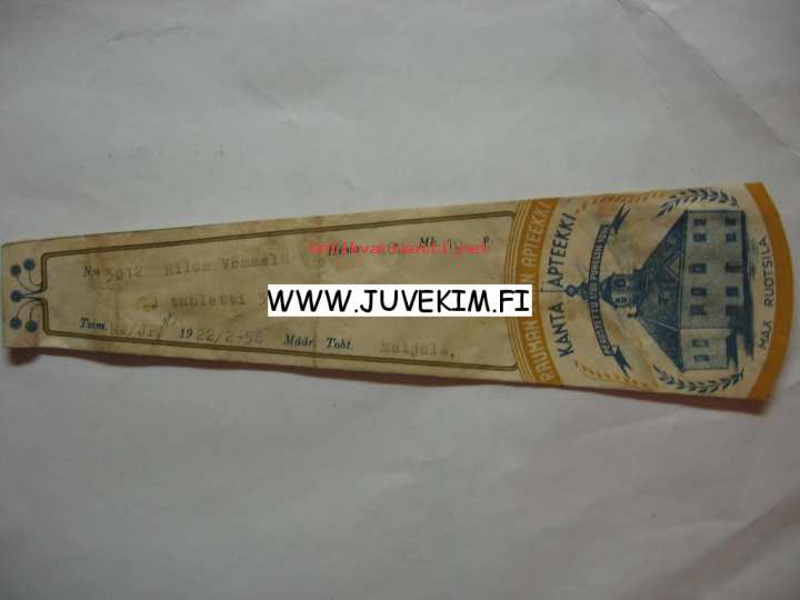 Rauman 1:nen Apteekki 1958 -signatuuri