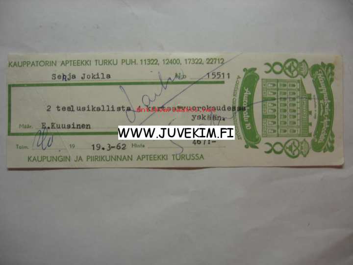 Kauppatorin Apteekki 1962 Turku -signatuuri