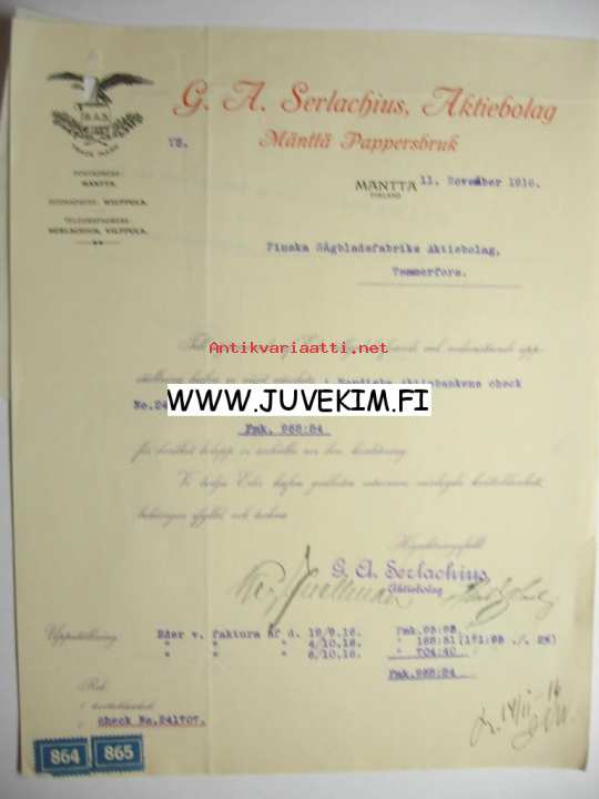 G. A. Serlachius, Aktiebolag Mänttä 11.11.1916 -asiakirja