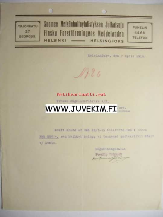 Suomen Metsänhoitoyhdistyksen Julkaisuja Helsingfors/Helsinki 7.4.1919 -asiakirja