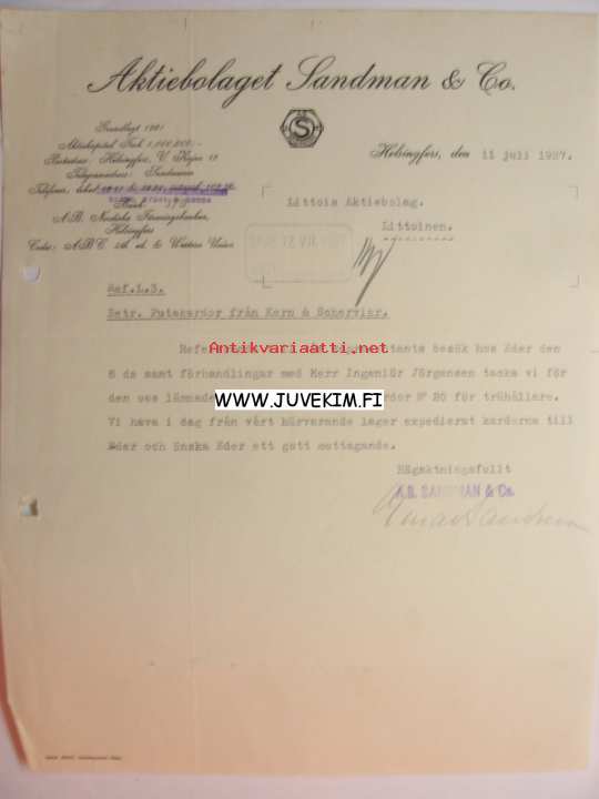 Aktiebolaget Sandman & Co Helsingfors/Helsinki 11.6.1927