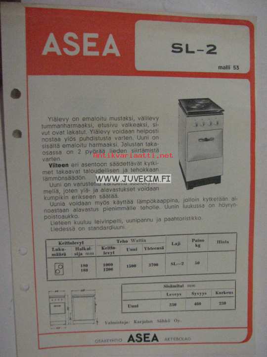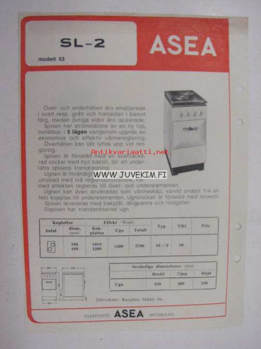 Asea SL-2 sähköhella -esite