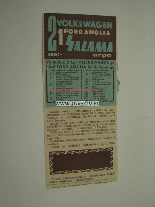 Maalaisliitto ry 1962 -arpalippu
