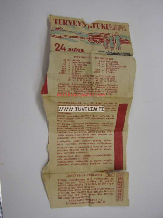Terveys ja Tuki 1954 -arpalippu