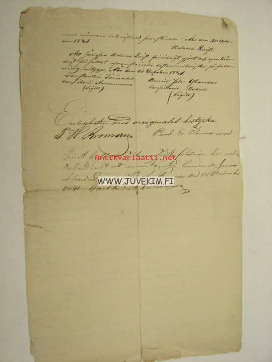 päiväys: 20.10.1841, Turku ja 18.11.1841, Paimio