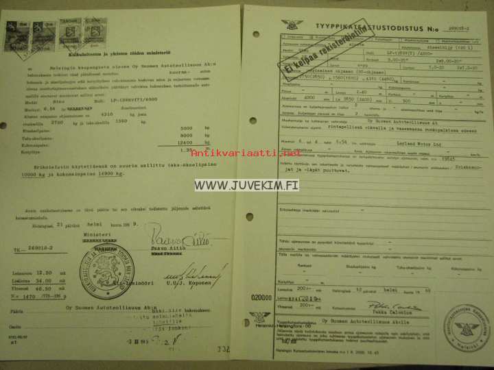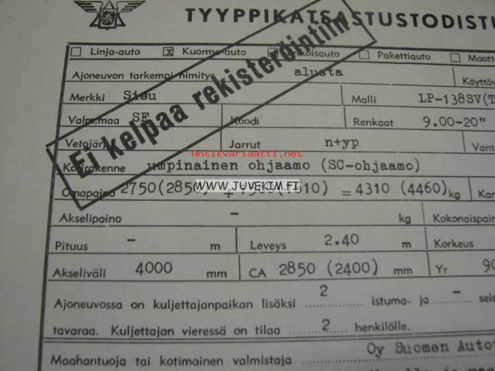 Sisu LP-138 SV(T) / 4000 -tyyppikatsastustodistus, kopio