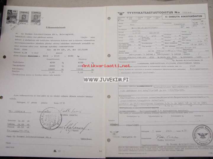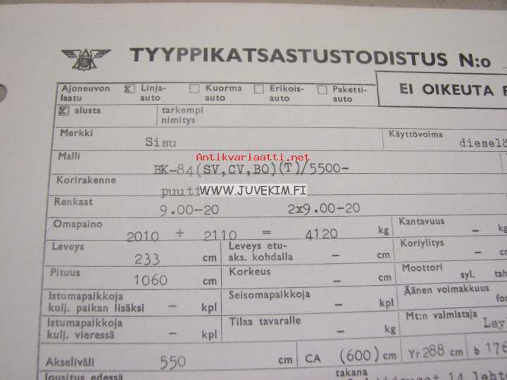 Sisu BK-84 (SV, CV, BO) (T) / 5500 -tyyppikatsastustodistus, kopio