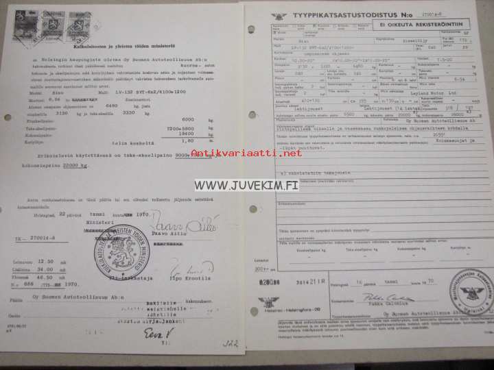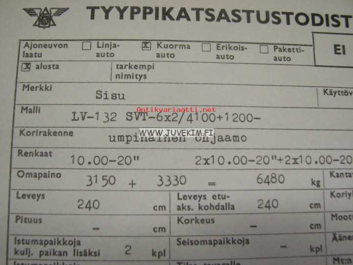 Sisu LV-132 SVT-6x2 /4100 + 1200 -tyyppikatsastustodistus, kopio