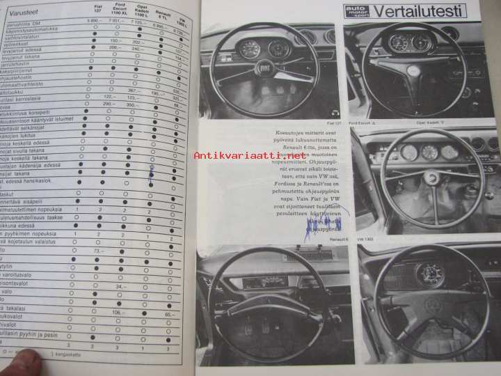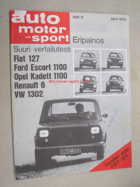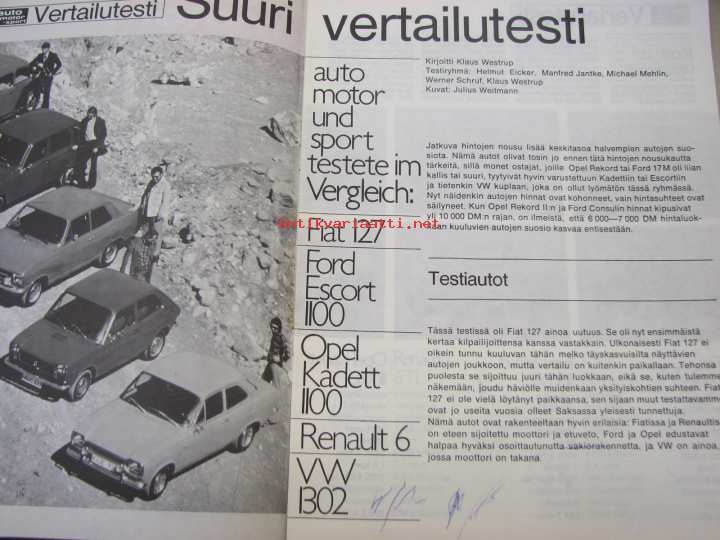 Fiat 127, Ford Escort 1100, Opel Kadett 1100, Renault 6, VW 1302 vertailutesti -Auto Motor und Sport eripainos huhtikuu 1972
