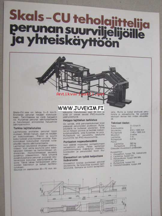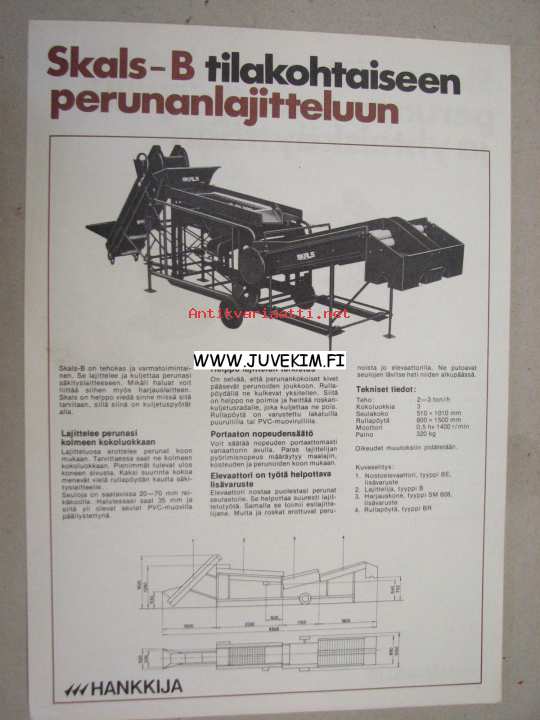 Skals-B perunanlajittelukone -myyntiesite