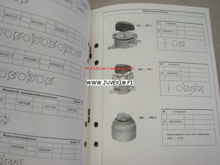 Valtion Sähköpaja OK pakettikytkimiä -tuoteluettelo