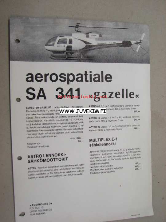 Aerospatiale SA 341 Gazelle radio-ohjattu helikopteri (ilmailu / lentokone)-myyntiesite