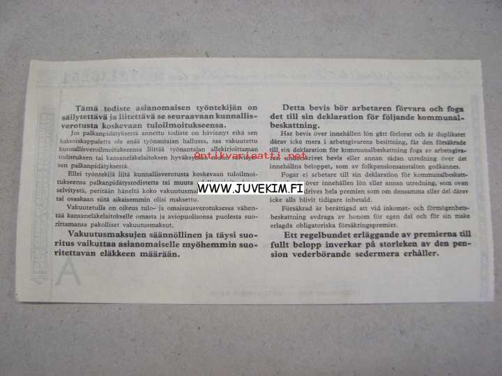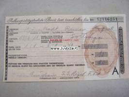 9 x 16 cm kuitti perityistä maksuista. Harvinainen, palkansaajat liittivät nämä aina veroilmoitukseensa, joten näitä ei ole paljon säilynyt.