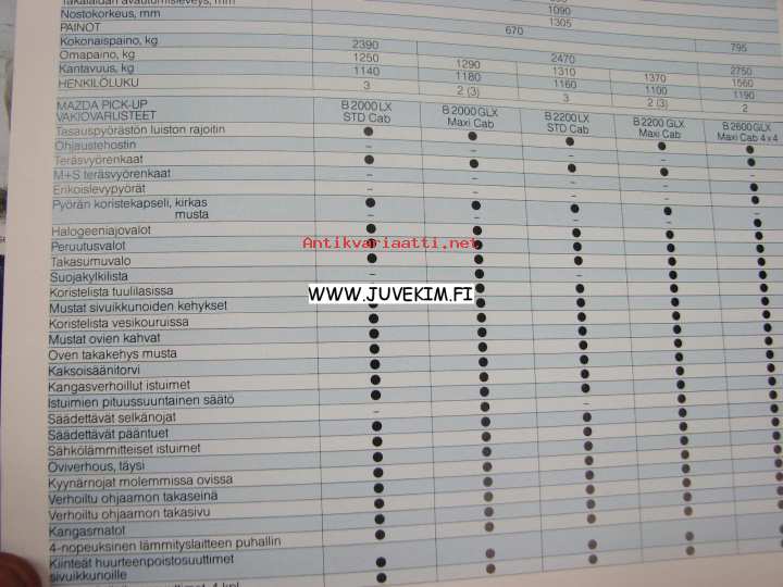Mazda Pick-up, standard Cab, Maxi Cab, Maxi Cab 4 x 4 -myyntiesite