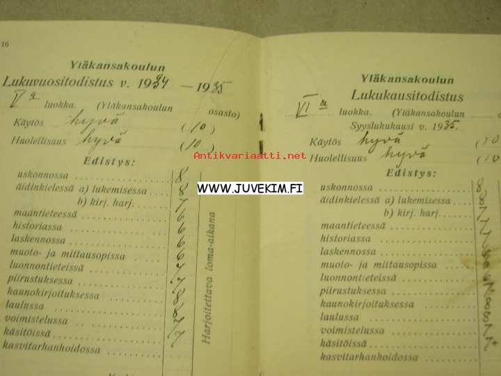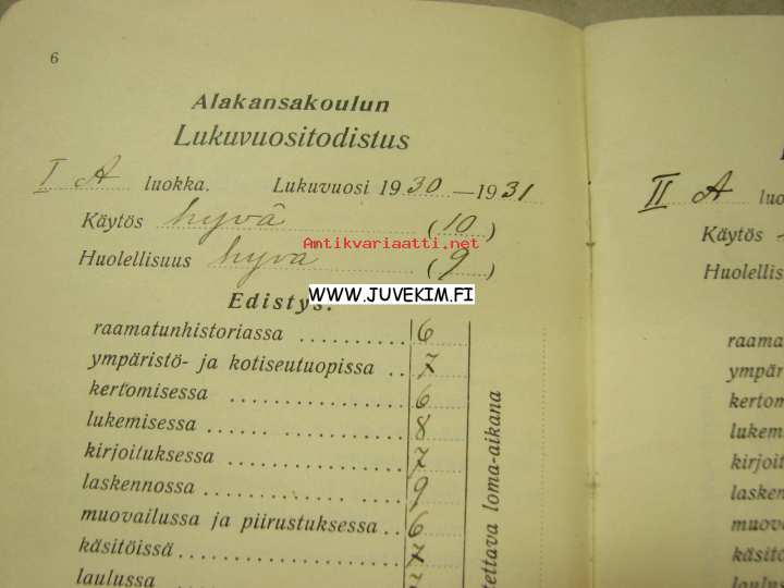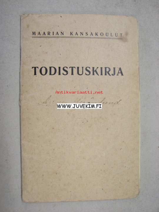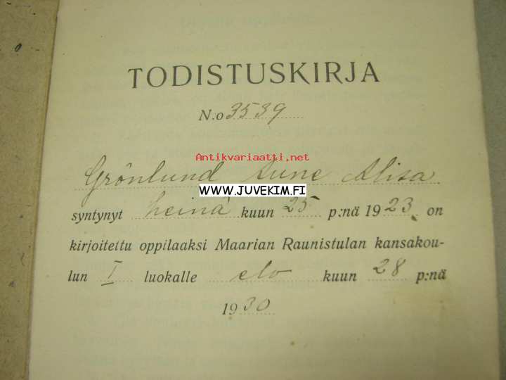 Aune Alisa Grönlund Todistuskirja Maarian (Raunistulan) kansakoulut