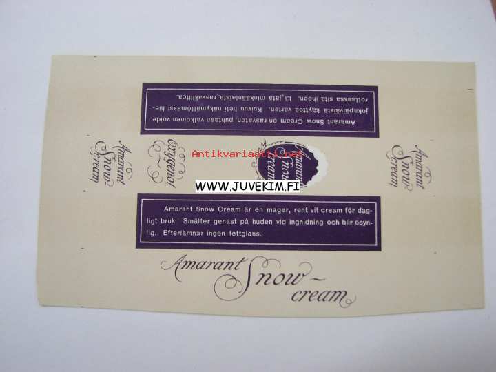 Oxygenol Amarant Snow cream -tuotemerkki / etiketti
