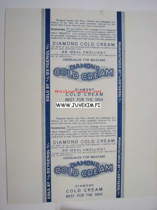 Oxygenol Diamond Cold Cream -tuotemerkki / etiketti