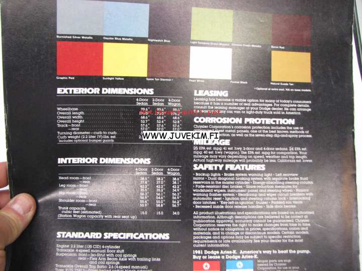 Dodge Aries K 1981 -myyntiesite
