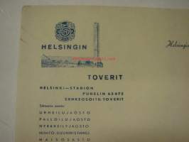 Helsingin Toverit Helsinki Stadion 9.5.1950 -asiakirja