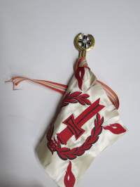 Sotainvaliidien VeljesliittoKorkeus 47 cm - lippu on hauras ja repeytynyt - ajan hammas syönyt, silkkiä tai vastaavaa materiaalia.