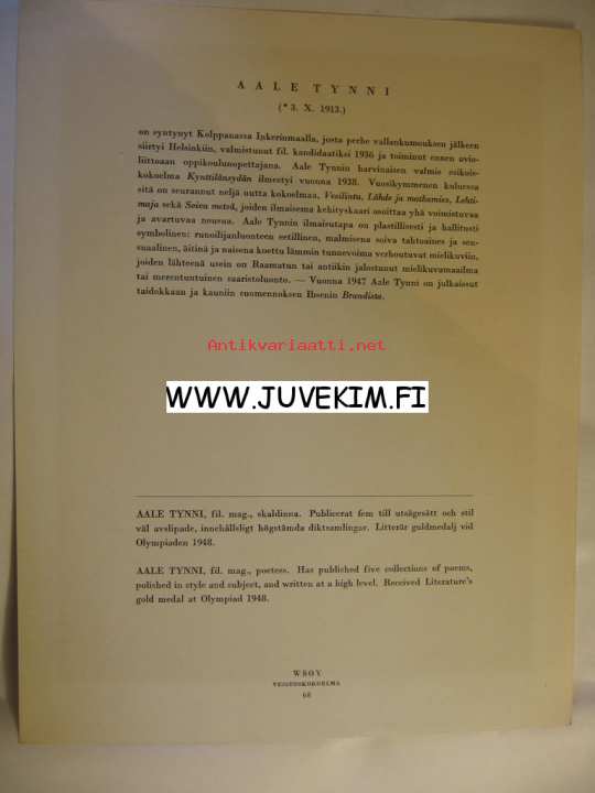 Wsoy, 1943 27 cm x 21 cm painokuva