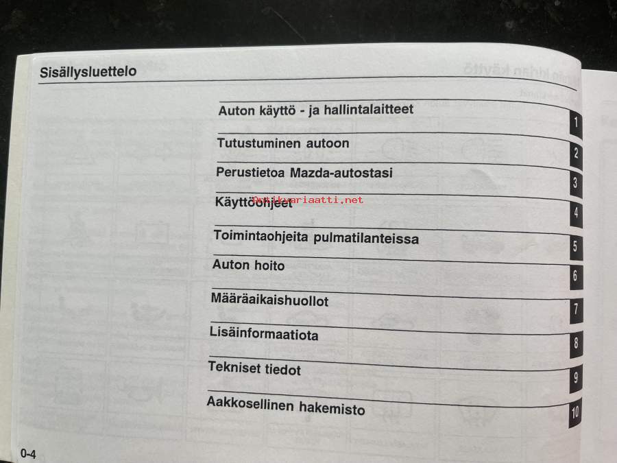 Mazda 323 Mio Neo 1998 -Käyttöohjekirja