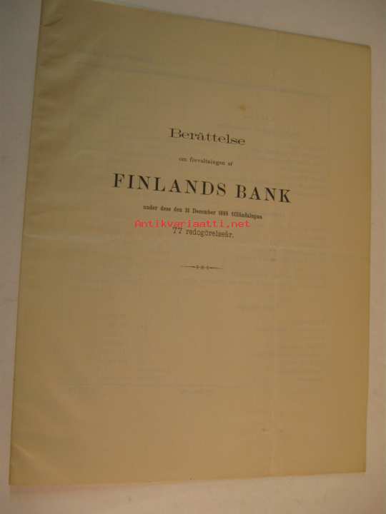 Finlands Bank berättelse om förvaltningen 31.12.1888
