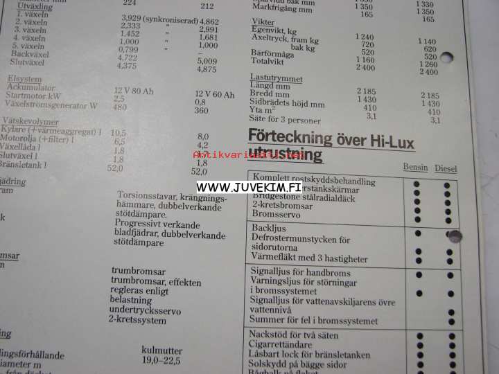 Toyota Hi-Lux försäljningsbroschyr -myyntiesite