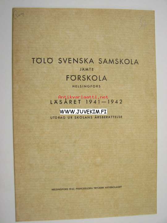 Tölö Svenska Samskola jämte förskola Helsingfors läsåret 1941-1942 utdrag ur skolans årsberättelse
