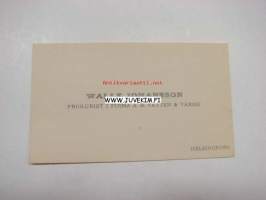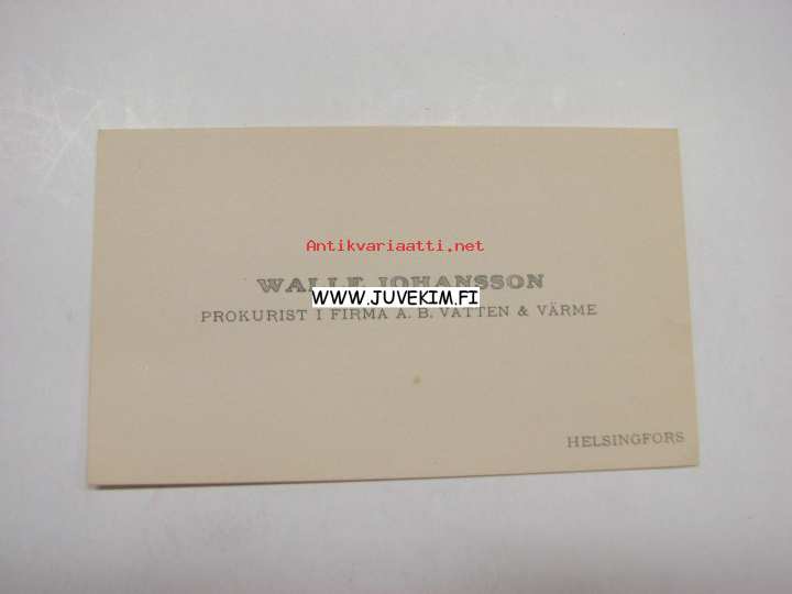 Walle Johansson, prokurist i Firma A.B. Vatten och Värme -käyntikortti