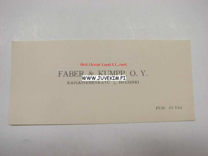 Faber & Kumpp. O.Y., Helsinki -käyntikortti
