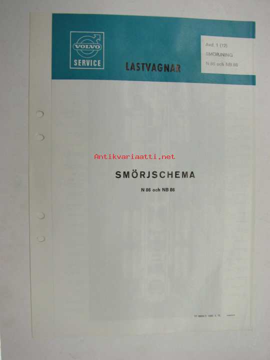 Volvo N 86, NB 86 Smörjschema -voitelukaavio