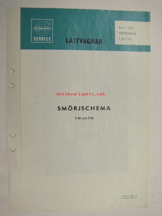 Volvo F 82, F 83 Smörjschema -voitelukaavio