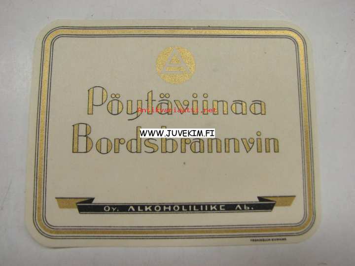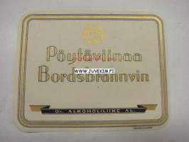Alko Pöytäviinaa Bordsbrännvin -viinaetiketti 1930-luvulta