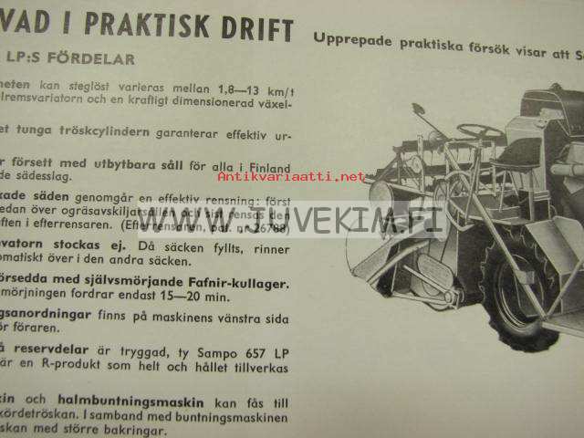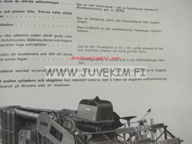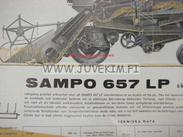 SAMPO 657 LP skördetröskan 1960 -myyntiesite ruotsiksi