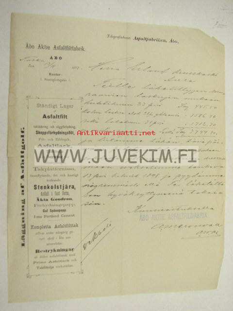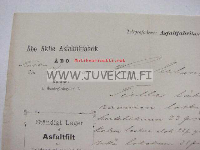 Åbo Aktie Asfaltfabrik 13.11.1897 -asiakirja