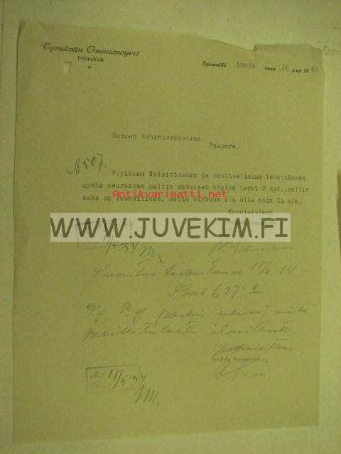 Tyrnävän Osuusmeijeri, Tyrnävä 16.5.1934 -asiakirja