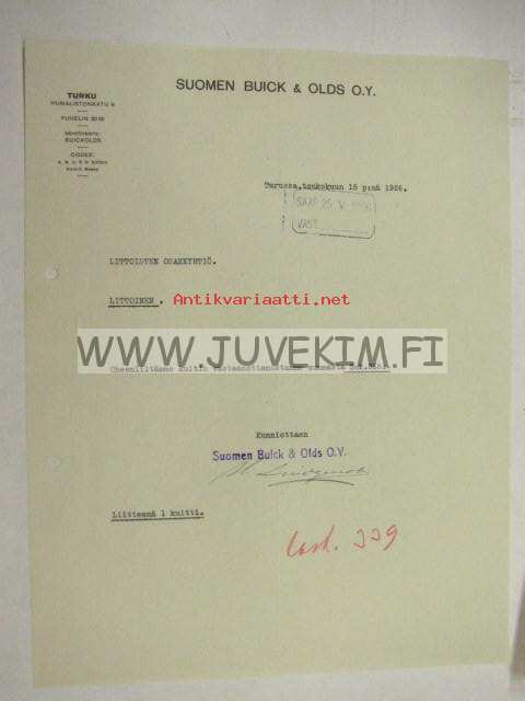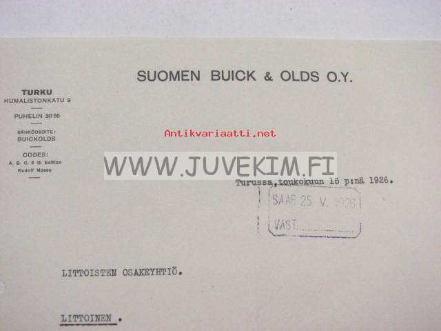 Suomen Buick & Olds Oy, Turku 15.5.1926 -asiakirja