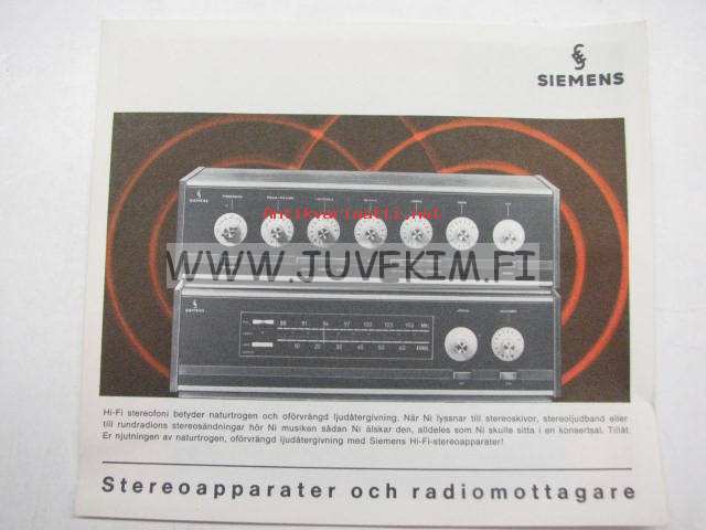 Siemens Stereoapparater och radiomottagare -myyntiesite ruotsiksi
