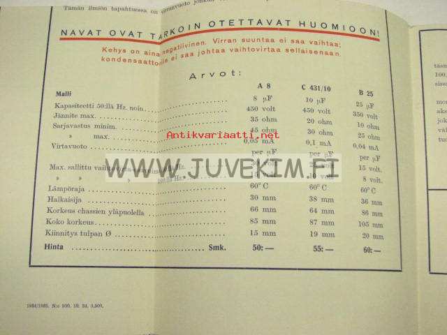 Triotron elektrolyyttikondensaattorit -myyntiesite