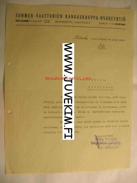 Suomen Vaatturien Kangaskauppa - Osakeyhtiö , 1930