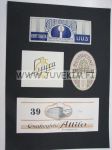 Alkuperäiset etiketit, kiinnitetty kartongille.