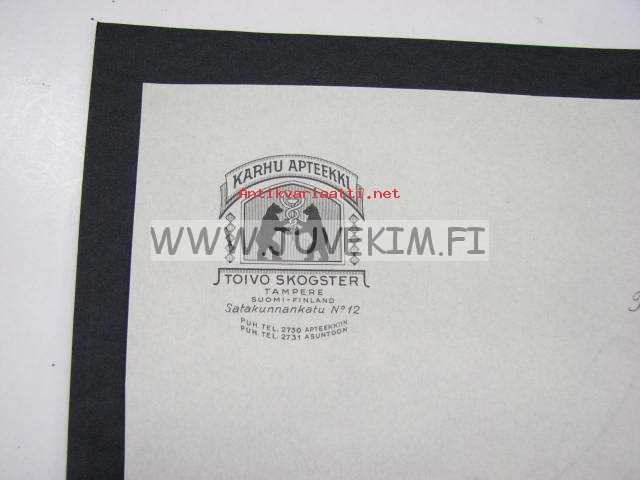 Karhu Apteekki Tampere -kirjapainon lomakemalli