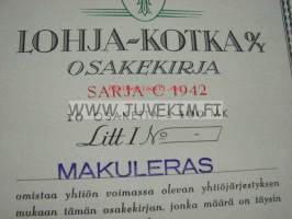 Lohja-Kotka Oy, Lohja 1942 100 mk -osakekirja