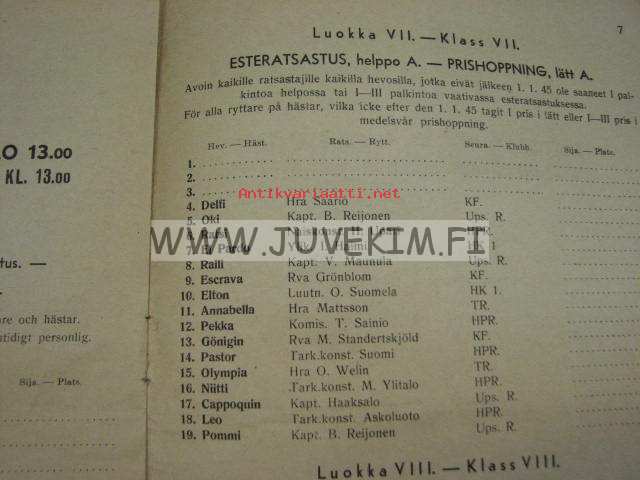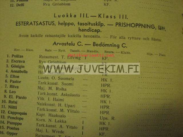 JR 6 / Turun Ratsastajat - Åbo Ryttare ohjelma Ratsastuskilpailuissa 1946 -käsiohjelma