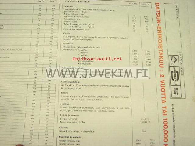 Datsun 120Y DL / 140Y GL -myyntiesite