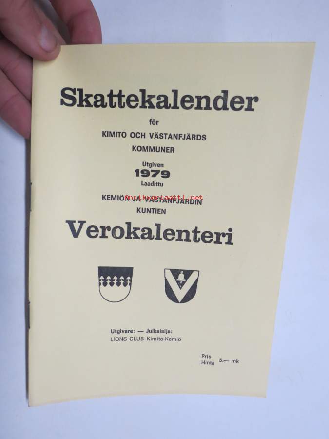 Kemiö & Västanfjärd Verokalenteri 1979 Kimito och Västanfjärds kommuner Skattekalender
